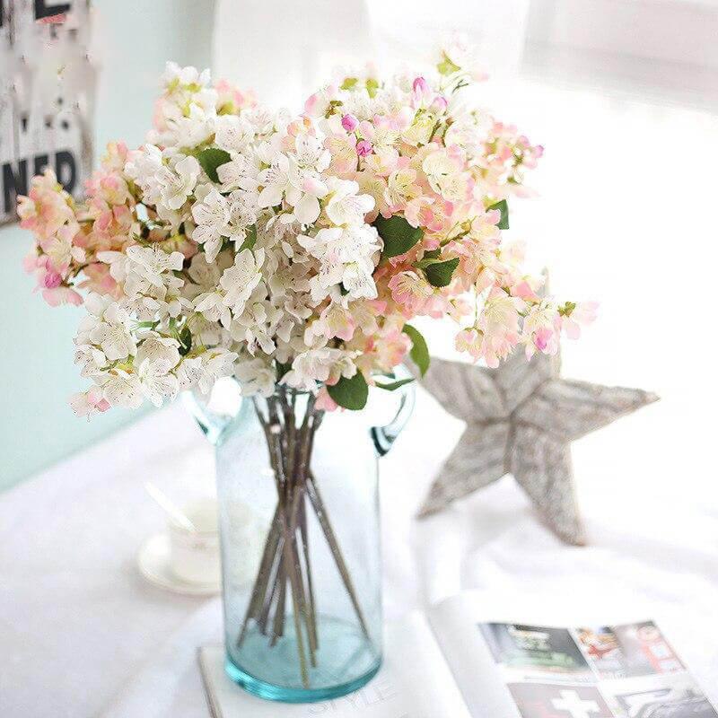 Découvrez ce magnifique bouquet de Branche de cerisier artificiel japonais disponible en cinq nuances variées : rose, vert-bleu, beige, blanc et rose foncé.